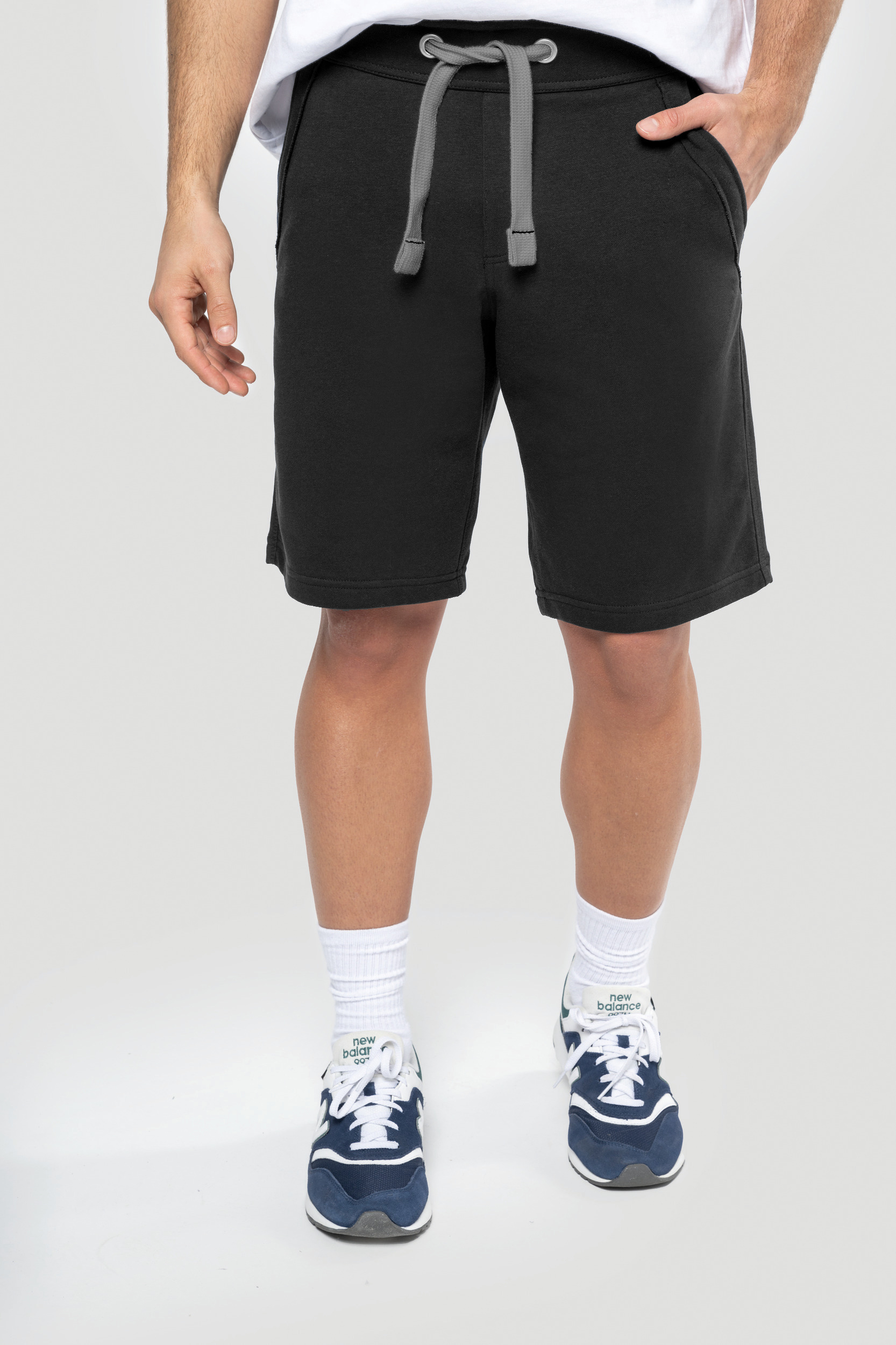 Kiváló minőségű Bermuda rövidnadrág, nehéz súlyú és vastag, tartós fésült pamut-poliészter keverékből. A French Terry belső bélés extra kényelmet biztosít, míg a húzózsinórral ellátott bordázott derékrész stabil illeszkedést garantál.
